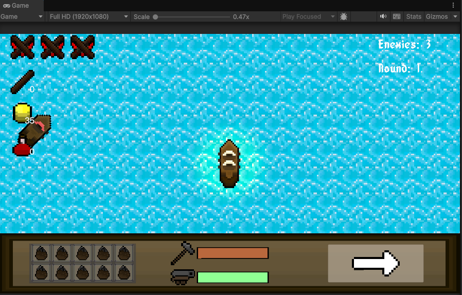 The health system consists of hearts that are shielded with planks. Once the shield is broken by taking damage, and the heart is exposed, the player may lose the heart and will not be able to regenerate unless they have a healing potion, which is purchased in the shop. Shields may be repaired throughout the round with planks.